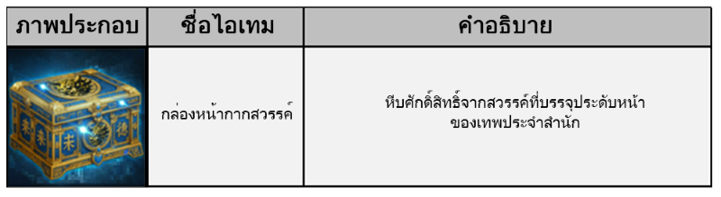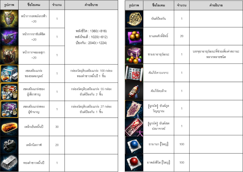 ㆍ ท่านมีโอกาสจะได้รับหน้ากาก (ประดับ 4) ที่ตรงกับสำนักของท่าน เสริมแกร่ง +20 เมื่อเปิดกล่อง